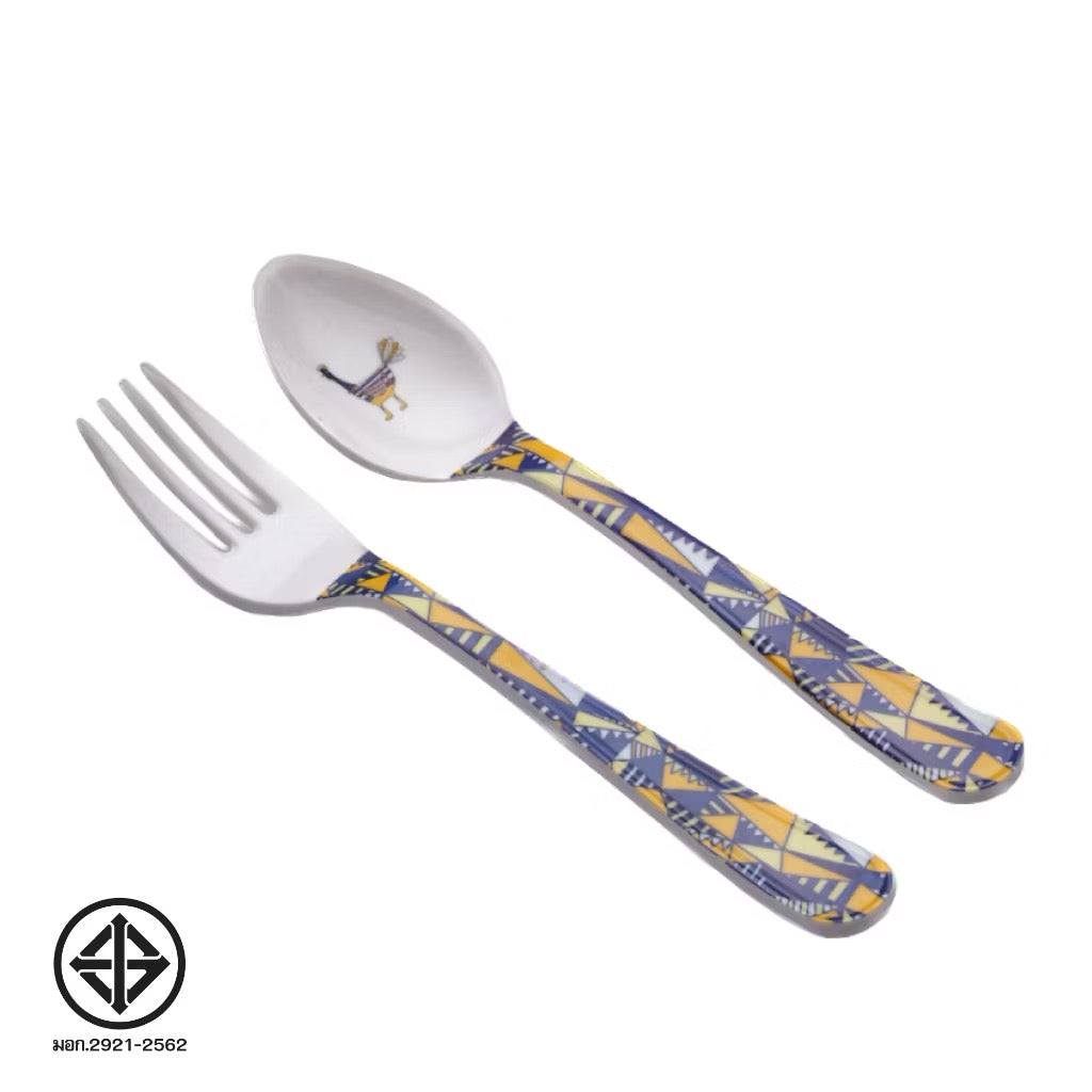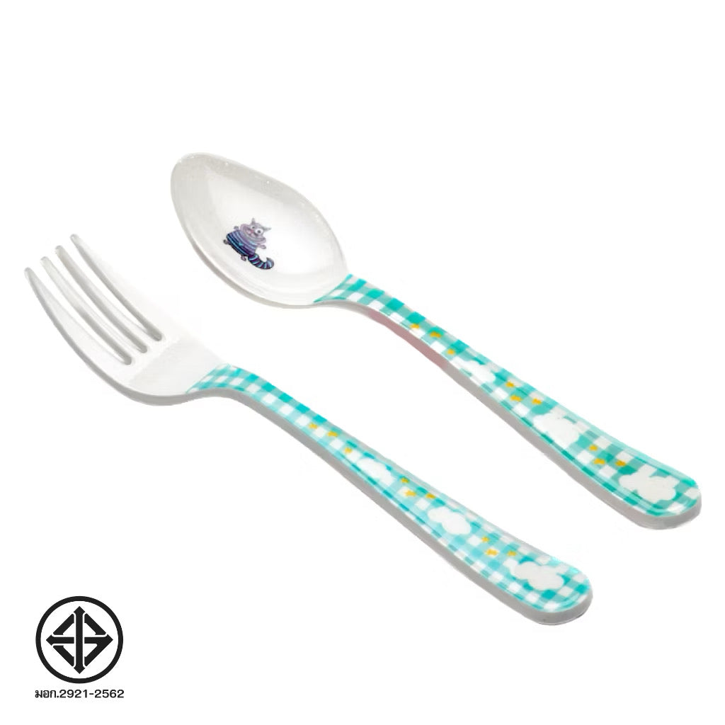 SuperSOSO! ช้อนเเละส้อมขนาดกลาง Boy-ish Fork & Spoon M เซตช้อนส้อม ขนาด16ซม (6.3นิ้ว) เมลามีน ช้อนส้อมน่ารัก ลายการ์ตูน